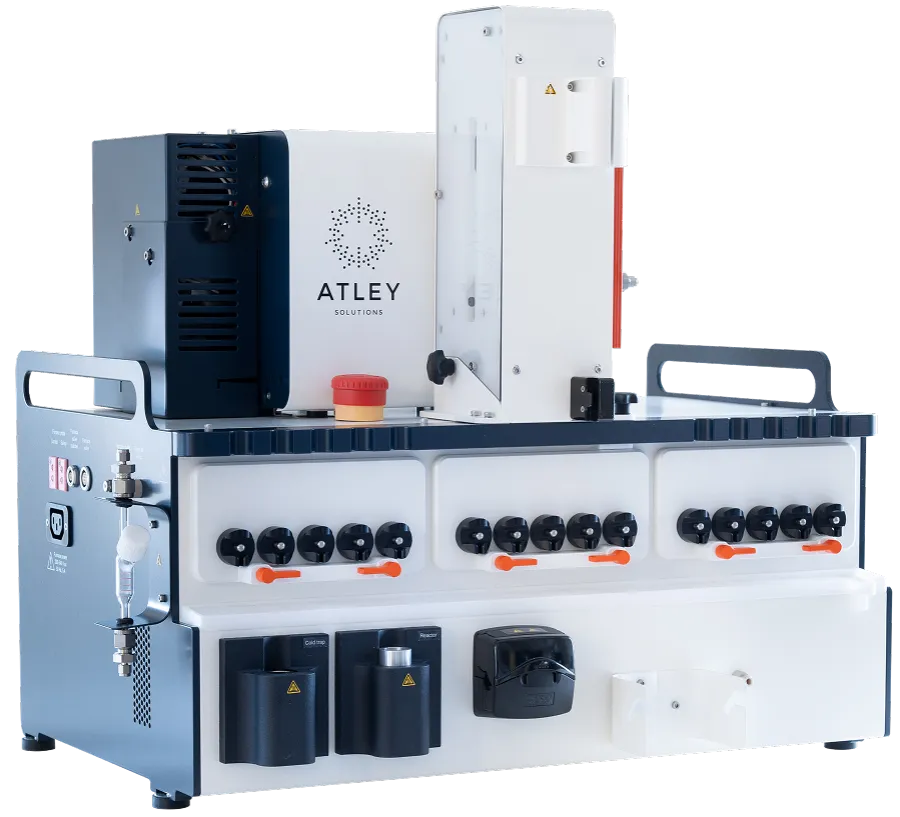 The Atley C100 is the world’s first and only commercial manufacturing system specifically designed for At-211 radiopharmaceuticals. This state-of-the-art platform addresses the critical challenges of At-211 radiopharmaceutical manufacturing, enabling reliable and scalable production from non-clinical R&D to full-scale commercial rollout.